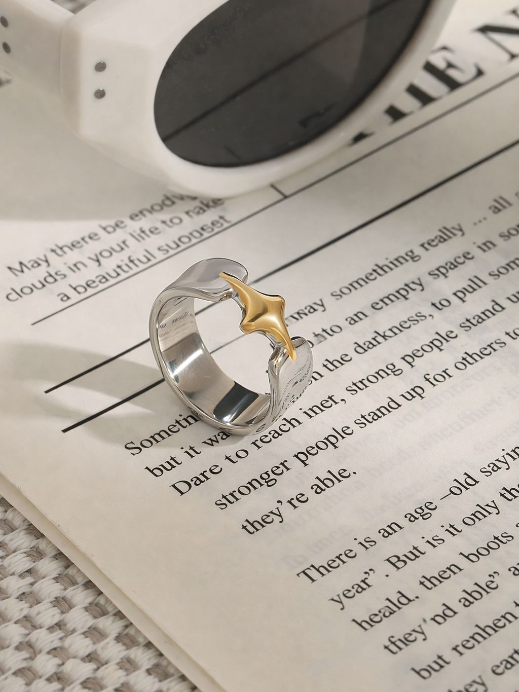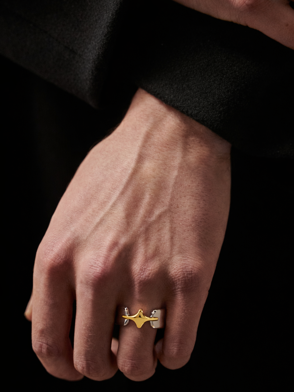 ⚡ Minimal King: Let the ring stand solo with neutral outfits to keep the focus on its bold two-tone design.