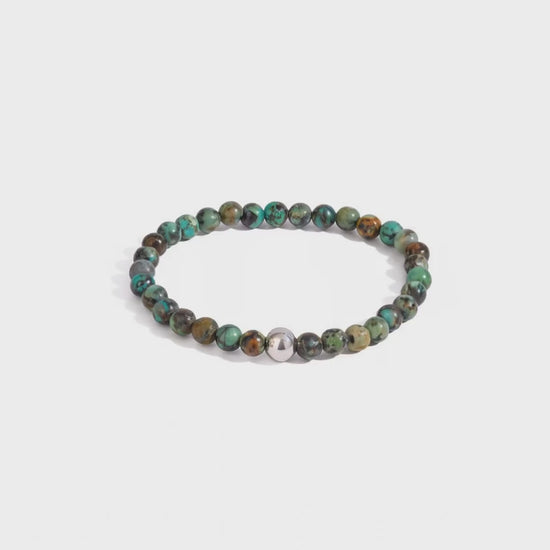 Designed with vibrant turquoise-inspired beads and a sleek stainless steel accent, this bracelet delivers a bold yet balanced look. Skin-safe, hypoallergenic, and water-resistant, it is built to handle daily wear with ease. The strong elastic band ensures a comfortable, secure fit, while the metallic bead detail adds a touch of modern sophistication. Lightweight, durable, and effortlessly stylish – a timeless everyday essential.