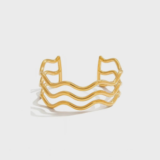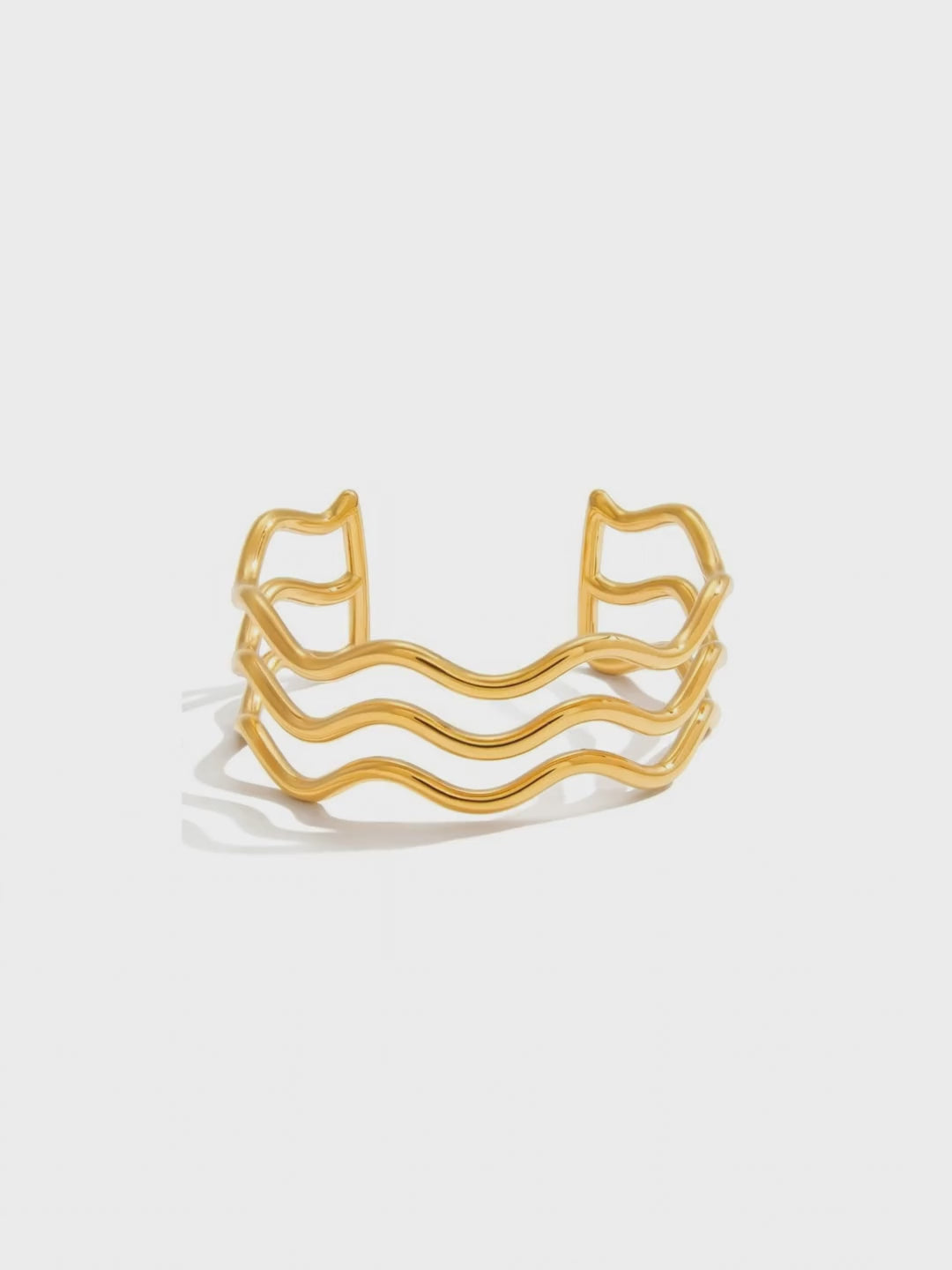Crafted in 18K gold-plated stainless steel, this open bangle blends modern minimalism with everyday elegance. Hypoallergenic, waterproof, and sweat proof, it’s designed for all-day wear without worry. Advanced PVD plating ensures a rich golden finish that stays radiant and tarnish-free for up to 2–3 years. Lightweight, durable, and effortlessly refined—your perfect go-to piece for timeless, everyday luxury.